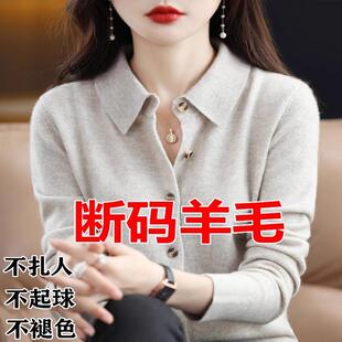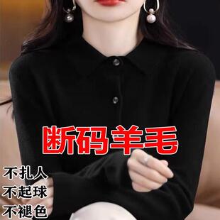 宽松毛衣外套翻领针织羊绒衫 品牌高级感羊毛开衫 女POLO领秋冬新款
