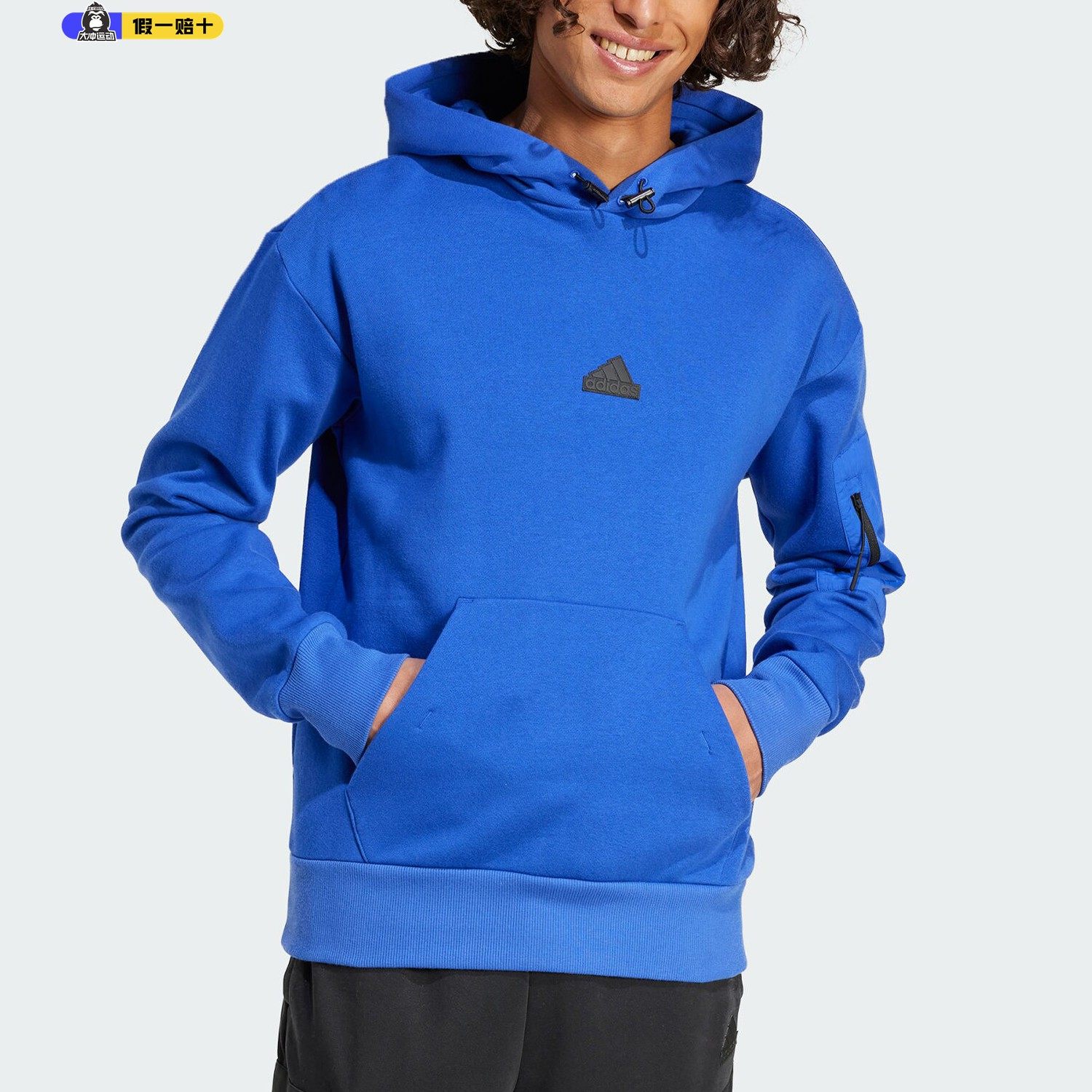 adidas阿迪达斯卫衣男纯色加绒保暖休闲运动健身连帽套头衫 IY1519