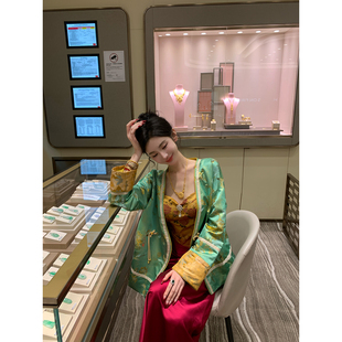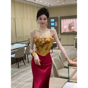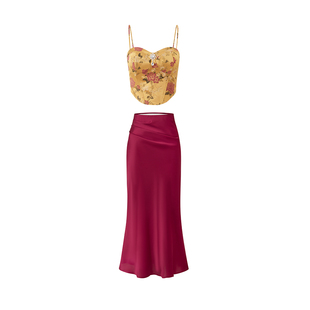 A字半身裙两件套装 雅乔 提花重工牡丹花吊带上衣 夏季 锦鲤添福