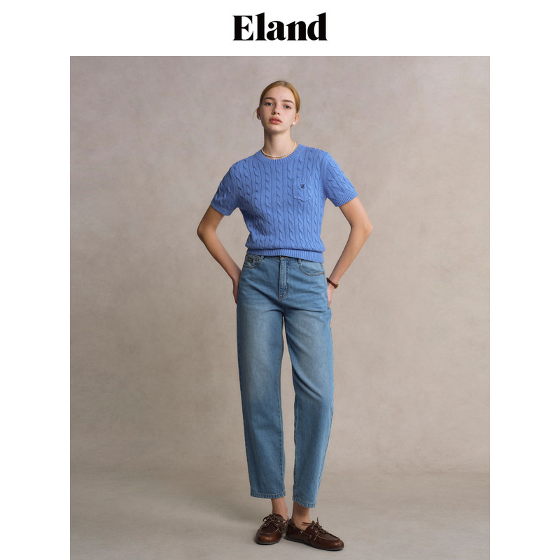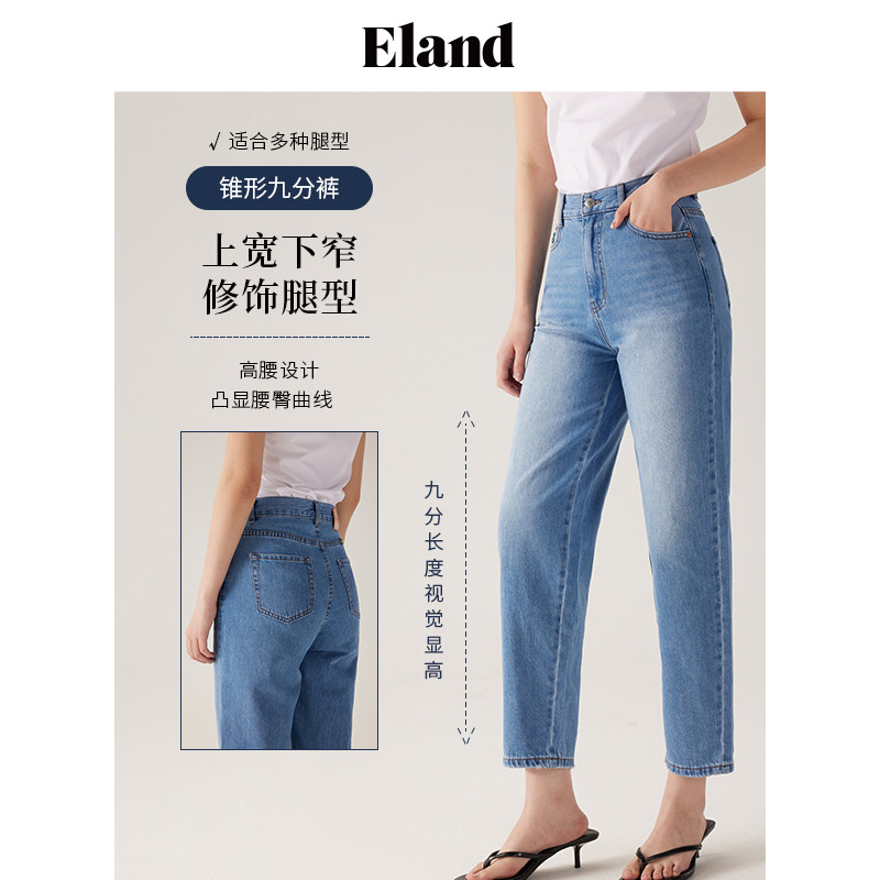 夏季 女遮肉锥形九分裤 Eland衣恋牛仔裤 新款 天然麻牛仔