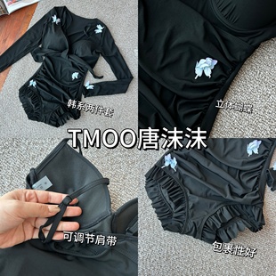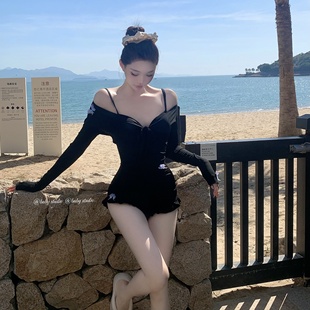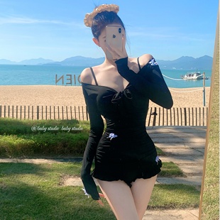 保守泡温泉两件套 黑色连体遮肉显瘦聚拢钢托长袖 2025新款 泳衣女款