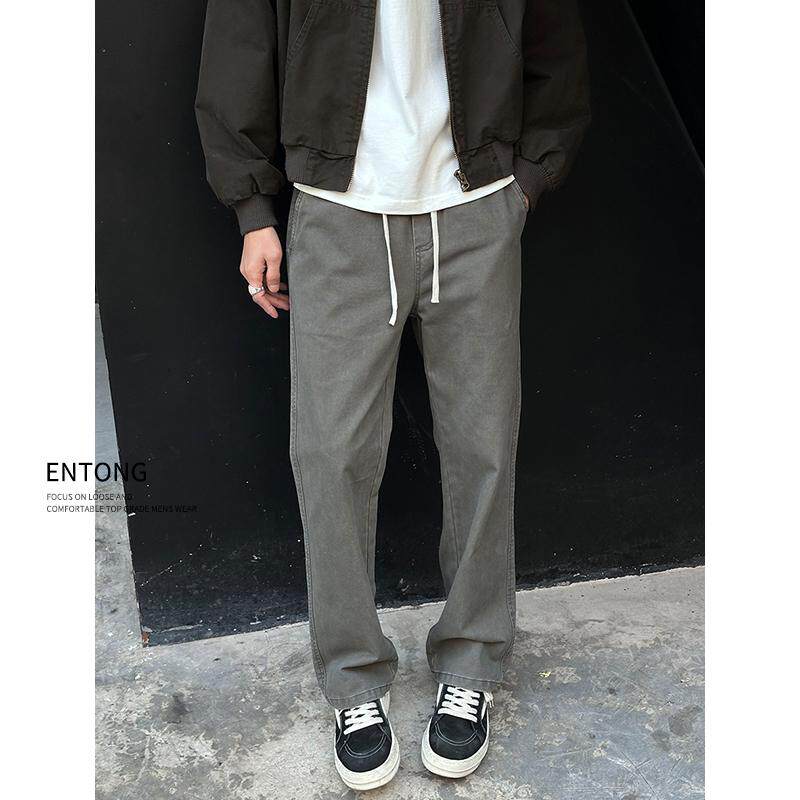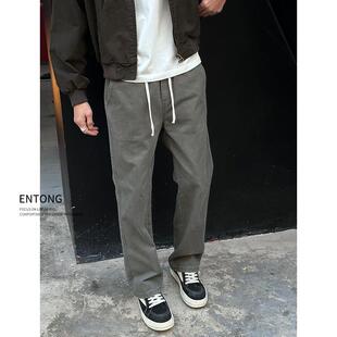 直筒宽松抽绳百搭vibe长裤 Entong美式 新款 男秋季 子 复古潮流休闲裤