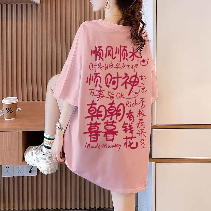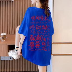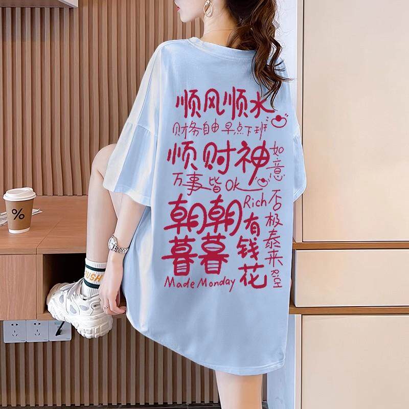 hiphop短袖 纯棉美式 T恤女夏季 潮牌中长款 上衣ins 大码 宽松半袖 女装