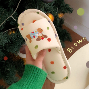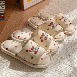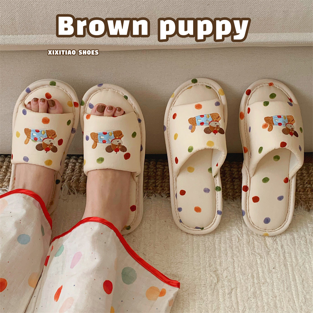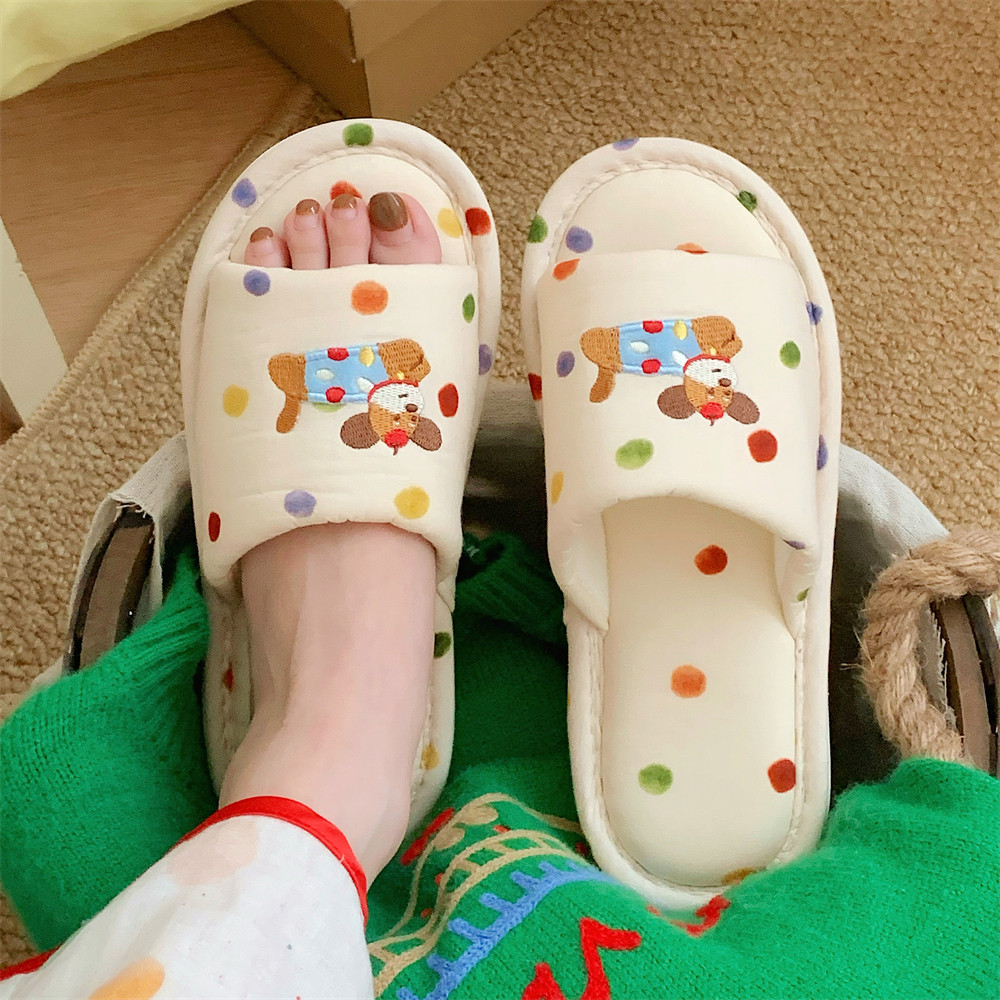 通用趣味狗狗舒适吸汗棉麻拖鞋 四季 女 学生休闲居家地板鞋 细细条
