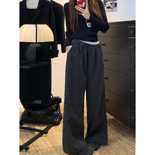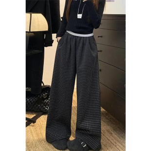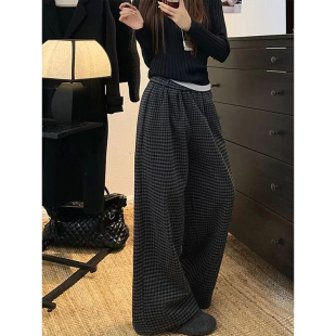 女2026春季 胖mm遮胯显瘦裤 新款 大码 子 阔腿裤 慵懒风复古格子休闲裤