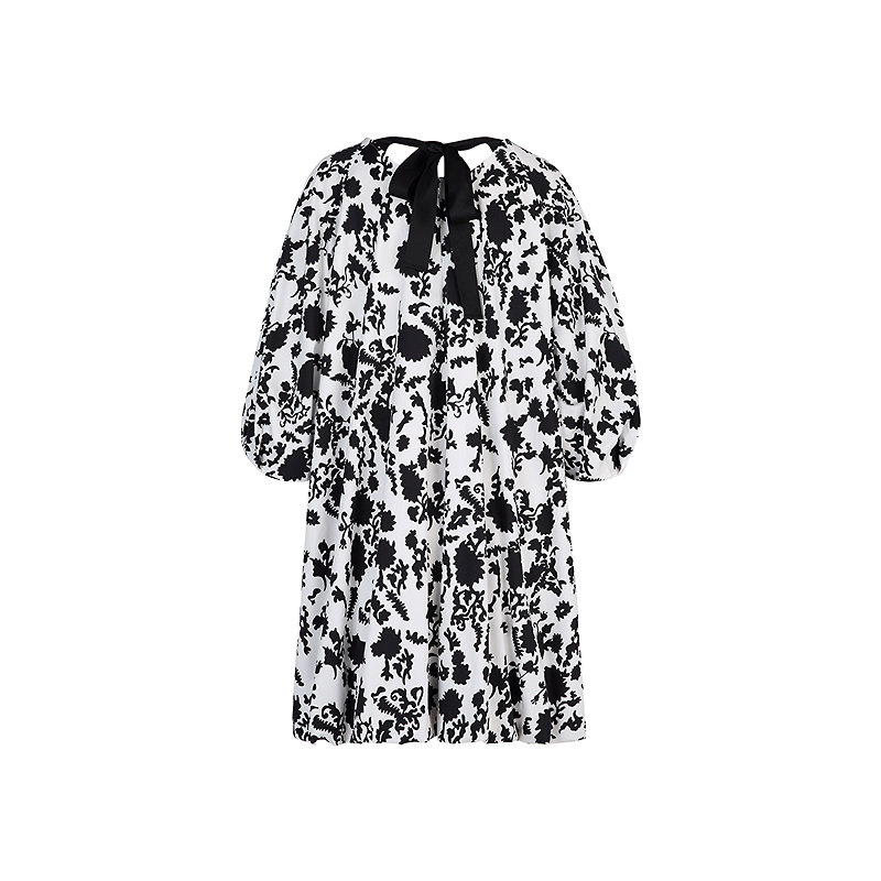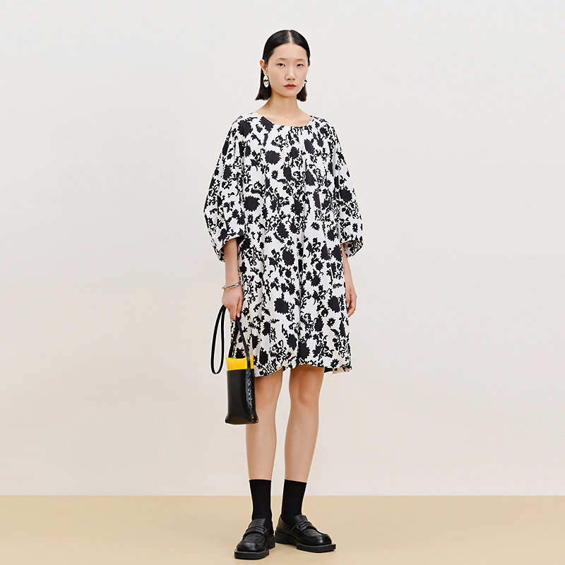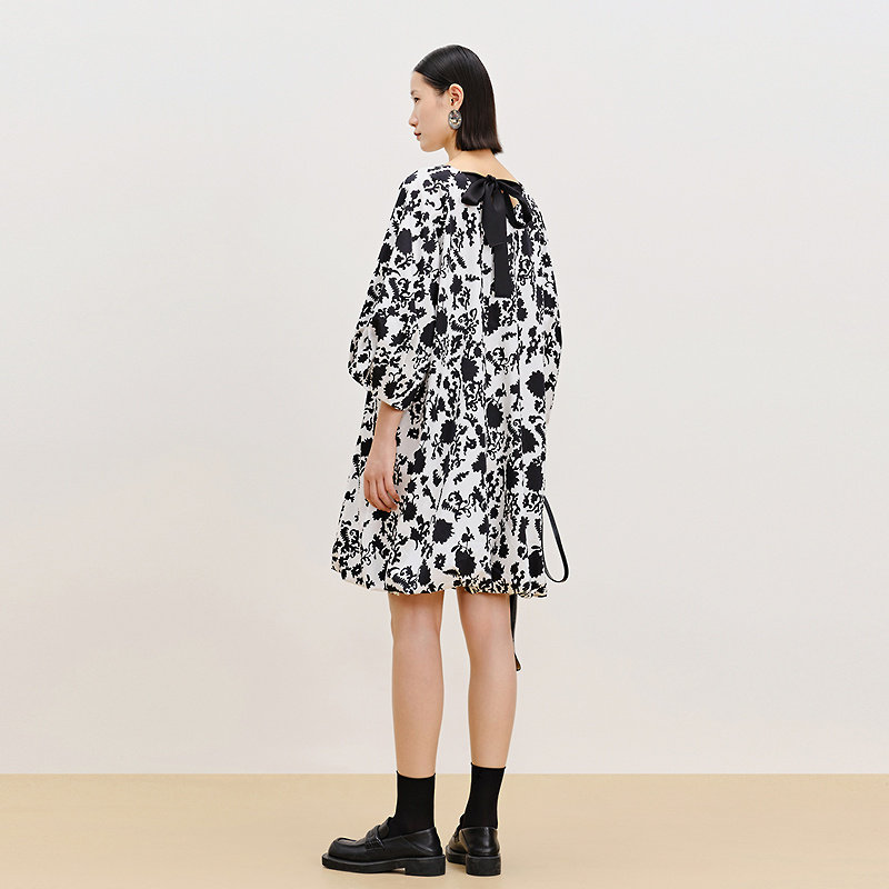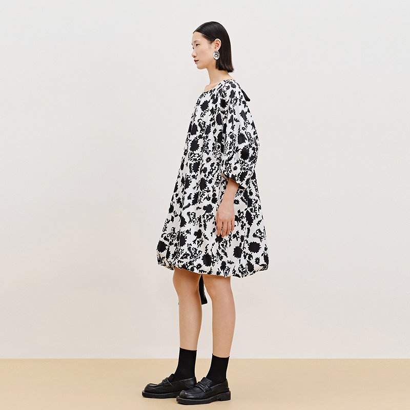 黑色圆领宽松文艺通勤休闲时尚 AUM噢姆夏季 印花连衣裙 FaFa裙