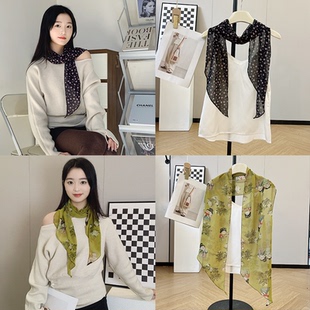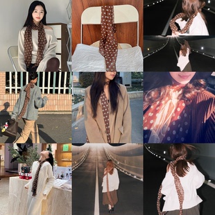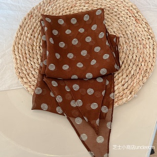 棕色波点丝巾印花高级百搭配饰系脖女2025年新款 发带绑发长条围巾