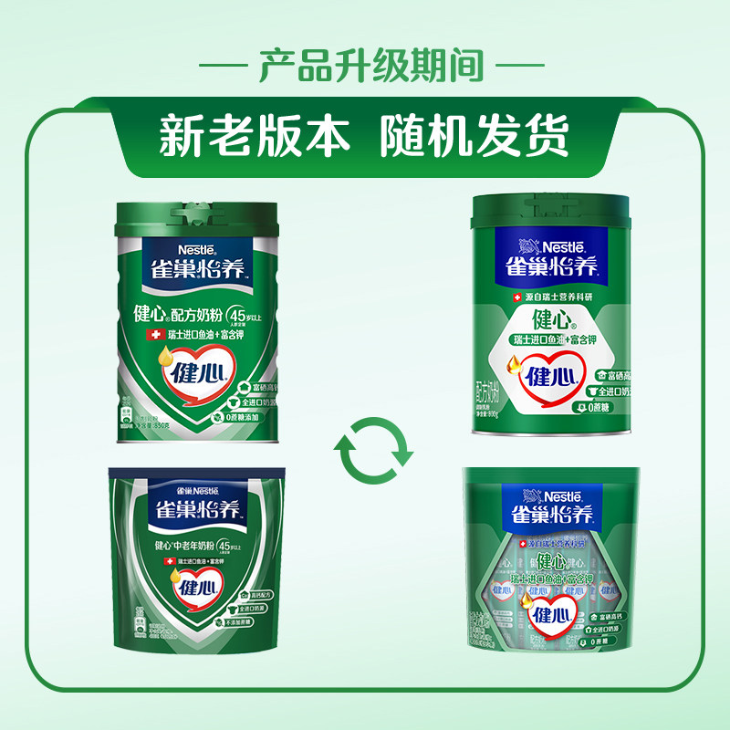 400g 便携高钙不添加蔗糖正品 雀巢怡养中老年奶粉健心鱼油袋装 条装