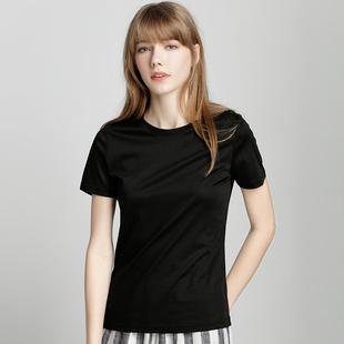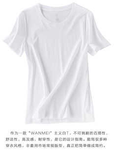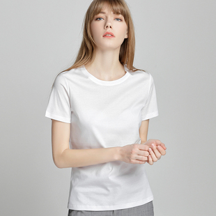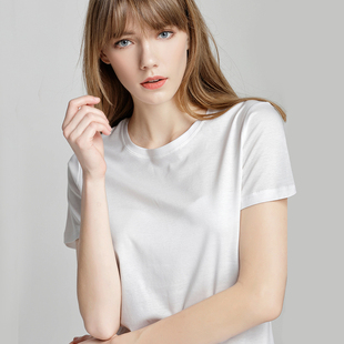 体恤上衣打底衫 宽松白t半袖 纯白色丝光棉t恤女纯棉短袖 2025年夏季