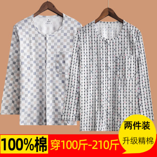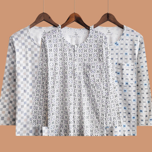 纯棉春夏季 秋衣男士 长袖 大码 开扣 中老年人开衫 爸爸睡衣打底衫 薄款