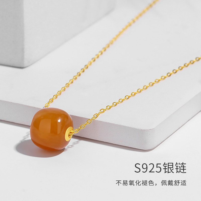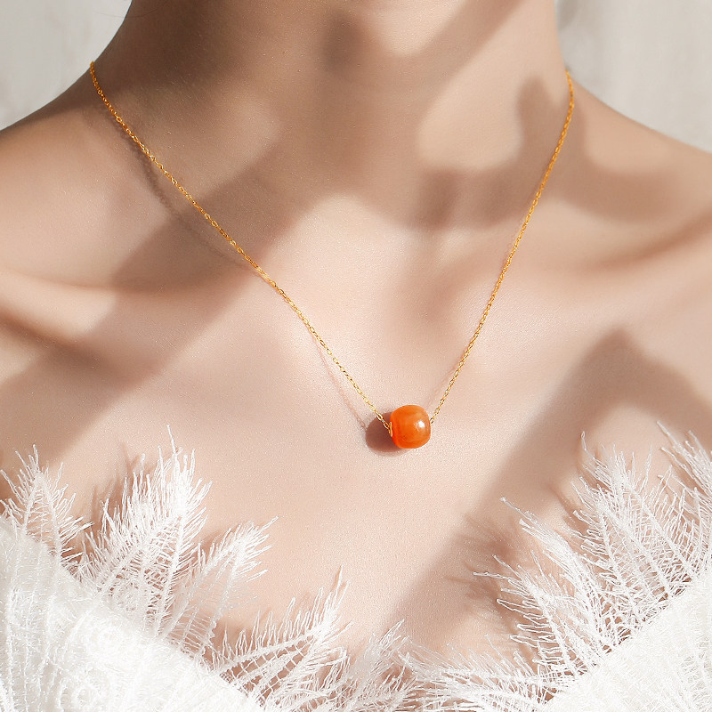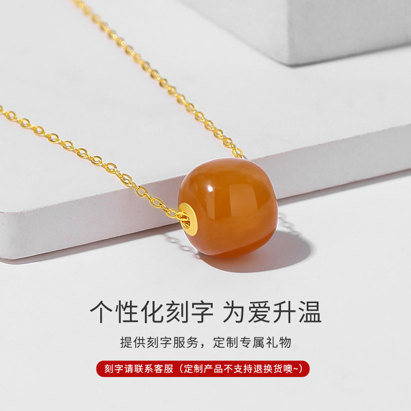 和田玉吊坠女且末糖18K金路路通挂坠焦糖色玉石锁骨链新中式 项链