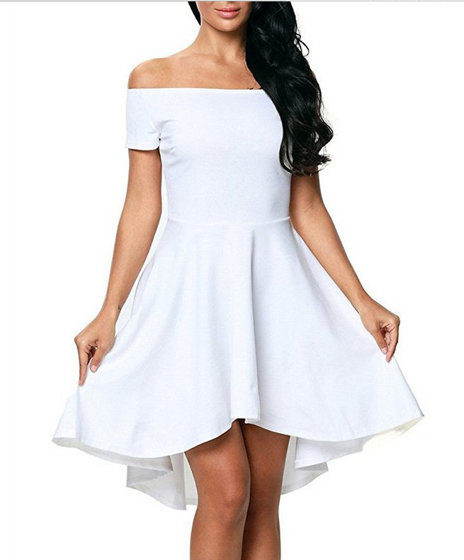 big places woman shoulder dress 一字肩大摆连衣裙女 word