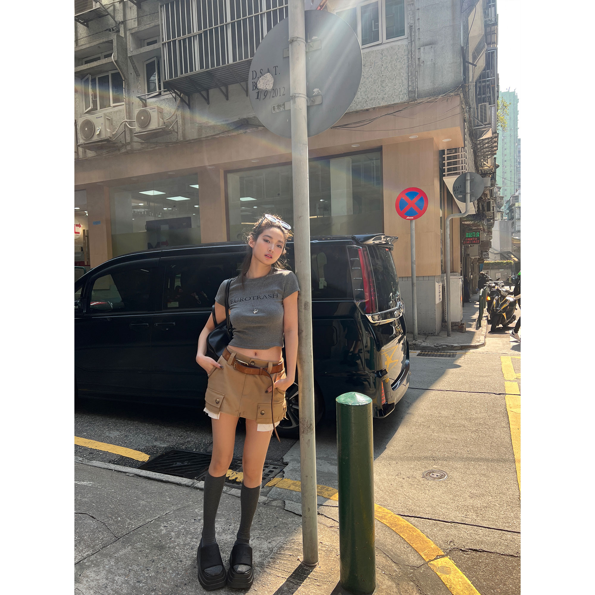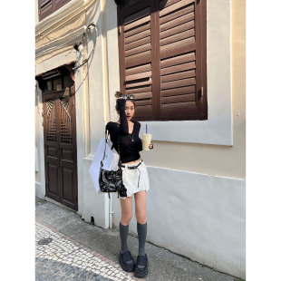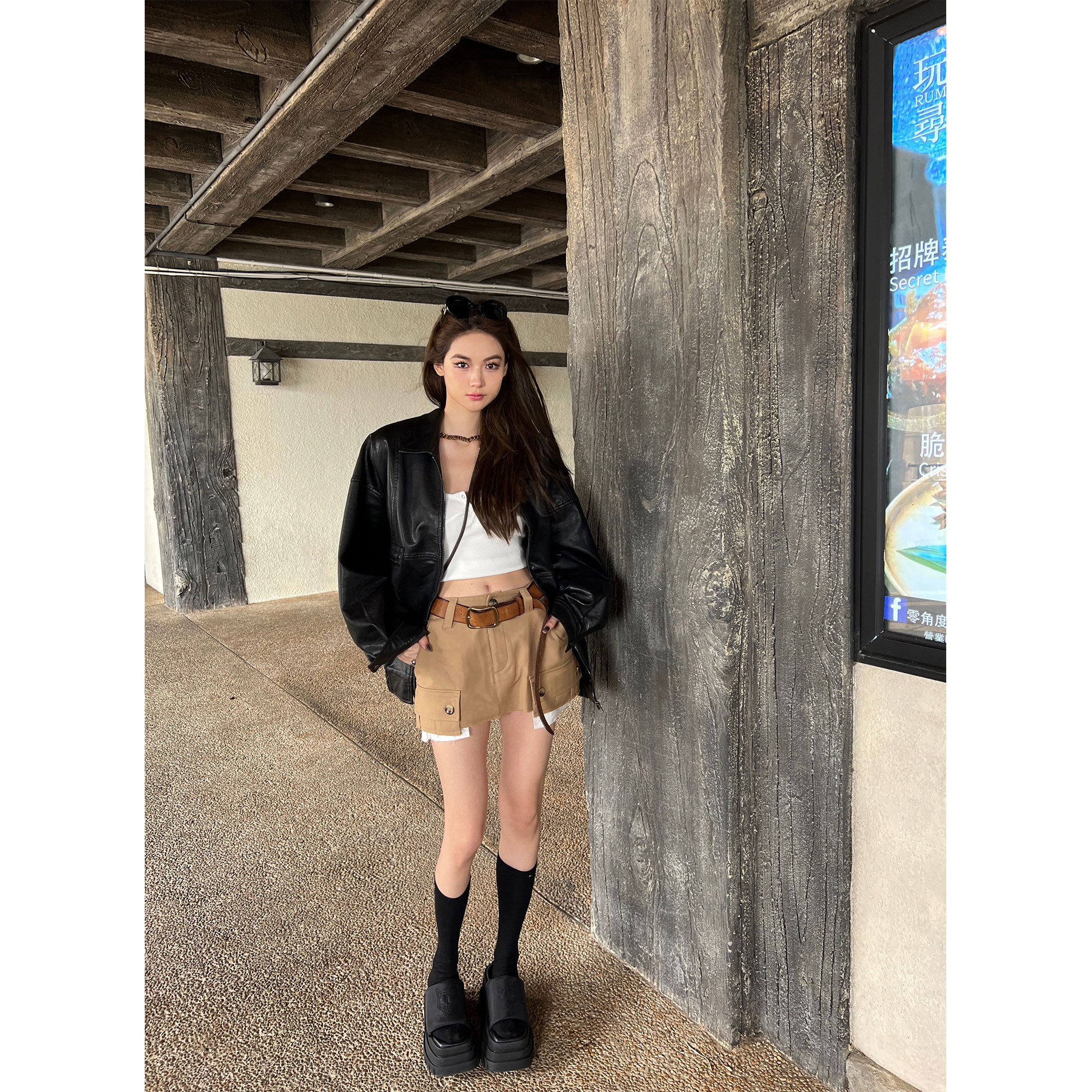miu感双色棕色工装 春球新款 半身裙短裙女裙子 Lin Xinlei