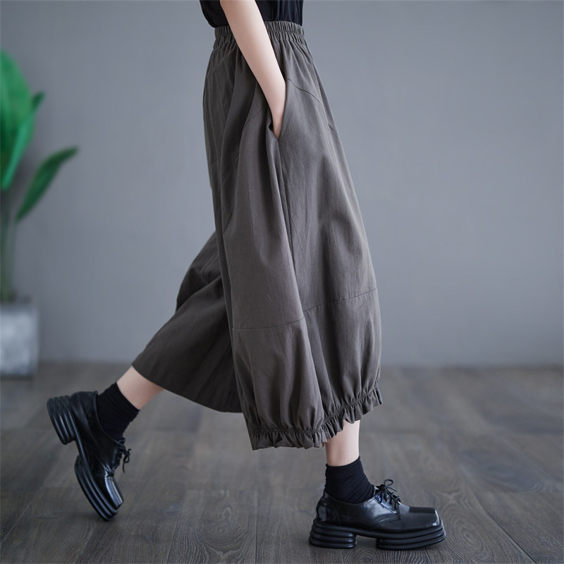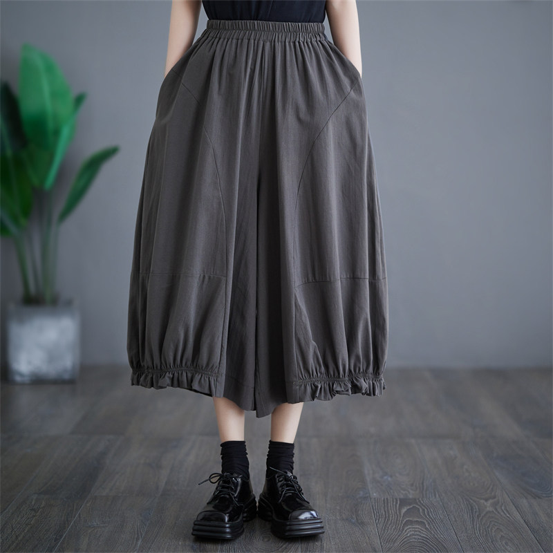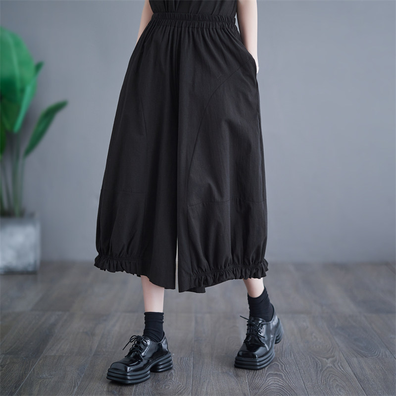 松紧腰裤 裙七分裤 子灯笼裤 大码 裙裤 女夏季 休闲女裤 黑色八分阔腿裤
