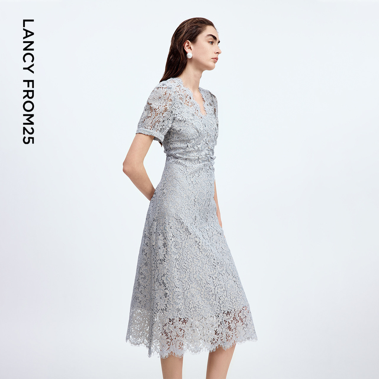 气质长裙女设计感 显瘦裙子新款 朗姿高级感法式 复古蕾丝连衣裙夏季