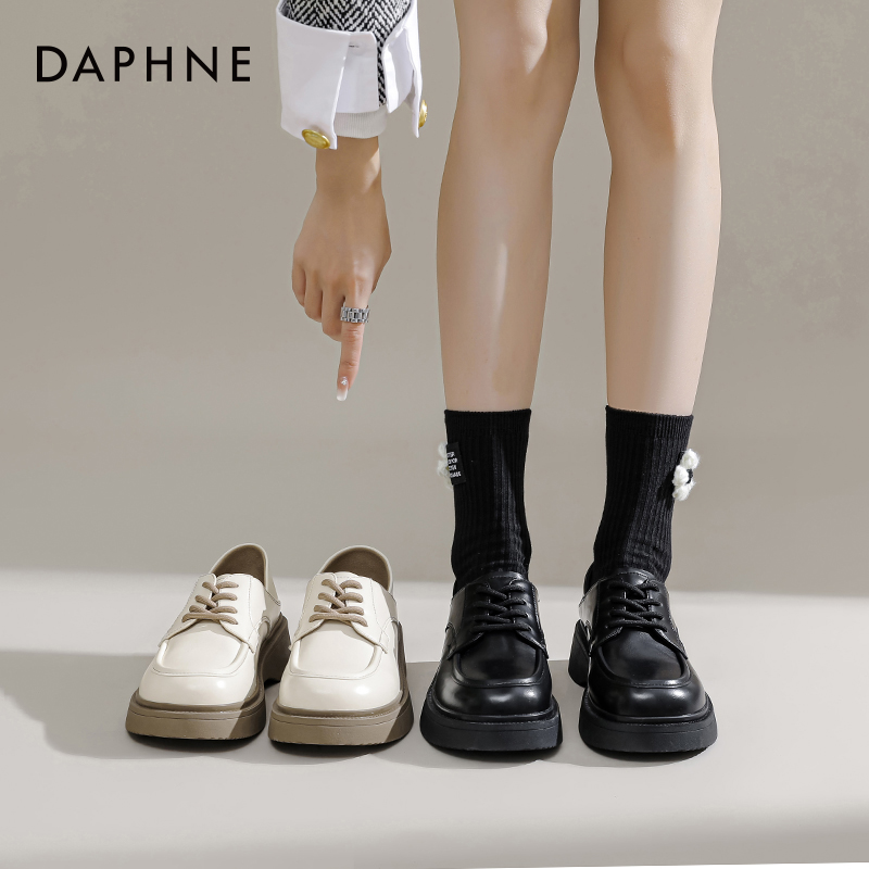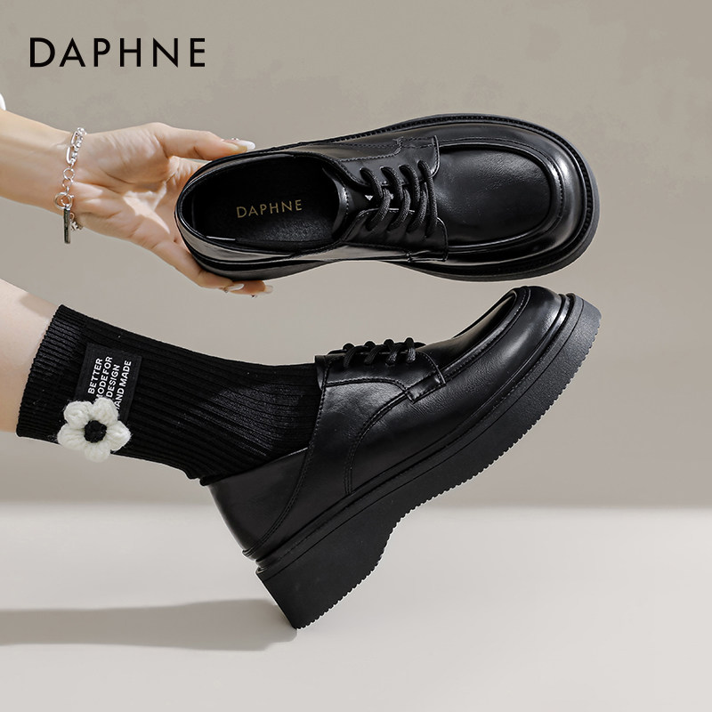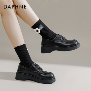 单鞋 达芙妮厚底乐福鞋 法式 复古英伦风小皮鞋 女百搭 女2023秋冬款