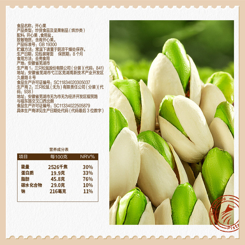 三只松鼠开心果100g每日坚果休闲儿童孕妇零食干果果仁炒货干货
