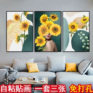 自粘贴画客厅装 饰画三联沙发背景墙壁画床头北欧清新餐厅楼道贴纸