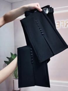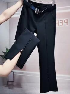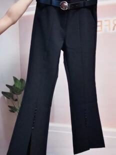 九分百搭气质西装 高腰开叉黑色多扣微喇裤 2024早春新款 裤 女时装