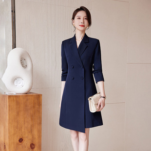 裙子 领连衣裙ol轻职风高级感商务主持正装 诗璐雅米白色中长款 西装