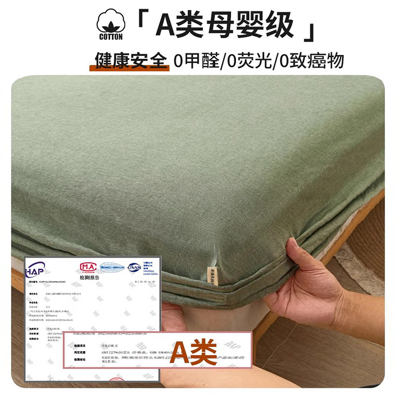 A类纯棉水洗棉床笠单件2025加厚100全棉床单三件套榻榻米防滑床罩