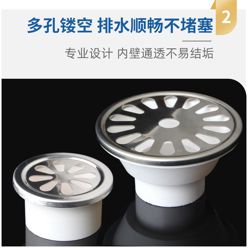 不锈钢内插地漏PVC排水管简易过滤网50阳台75圆形盖子110防堵盖子
