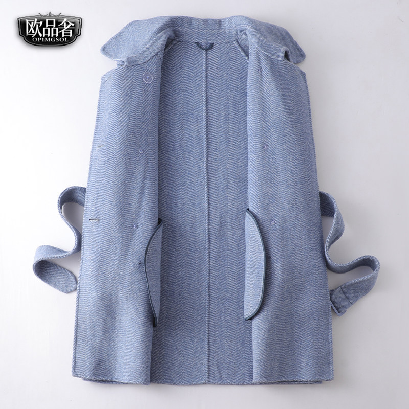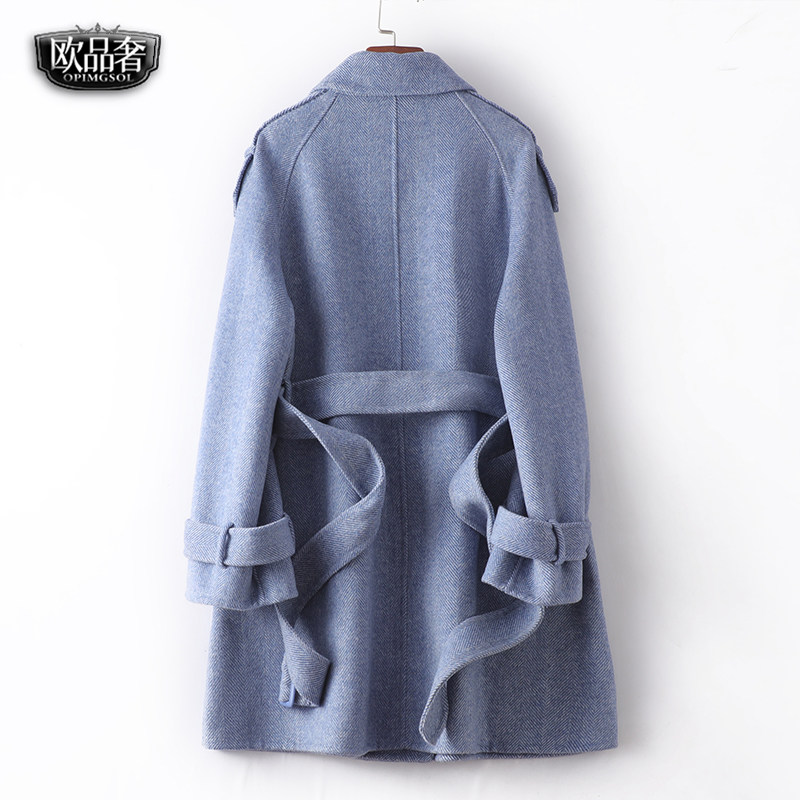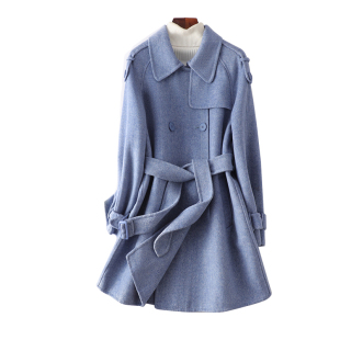 人字纹双面呢春秋新款 时尚 高端毛呢外套女士 韩版 羊毛大衣女中长款