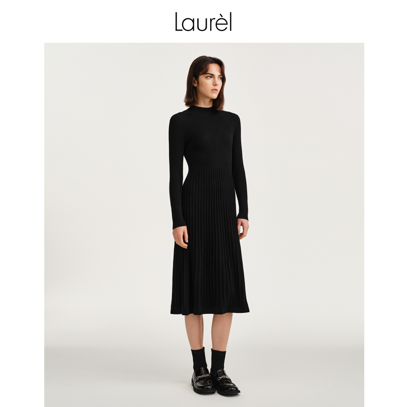 JOEY纯欲内搭天才秋冬黑白色冬天配大衣 裙子德绒双层斜肩连衣裙