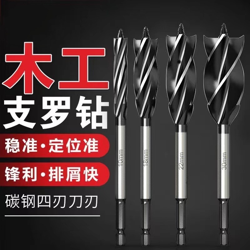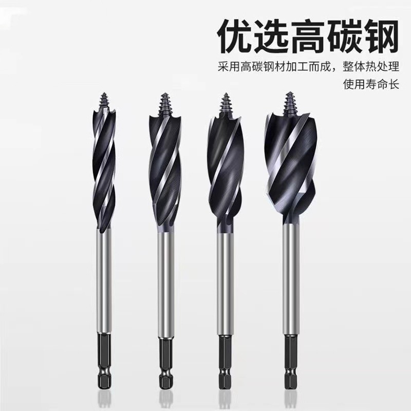 加长木工支罗钻四槽四刃六角柄麻花钻头门锁抽屉开孔扩孔钻打孔器