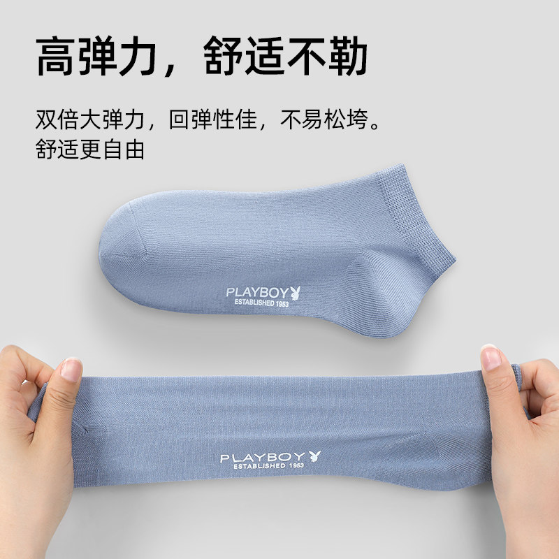 男袜子男生潮 薄款 花花公子袜子男士 短袜纯棉防臭吸汗100%全棉夏季
