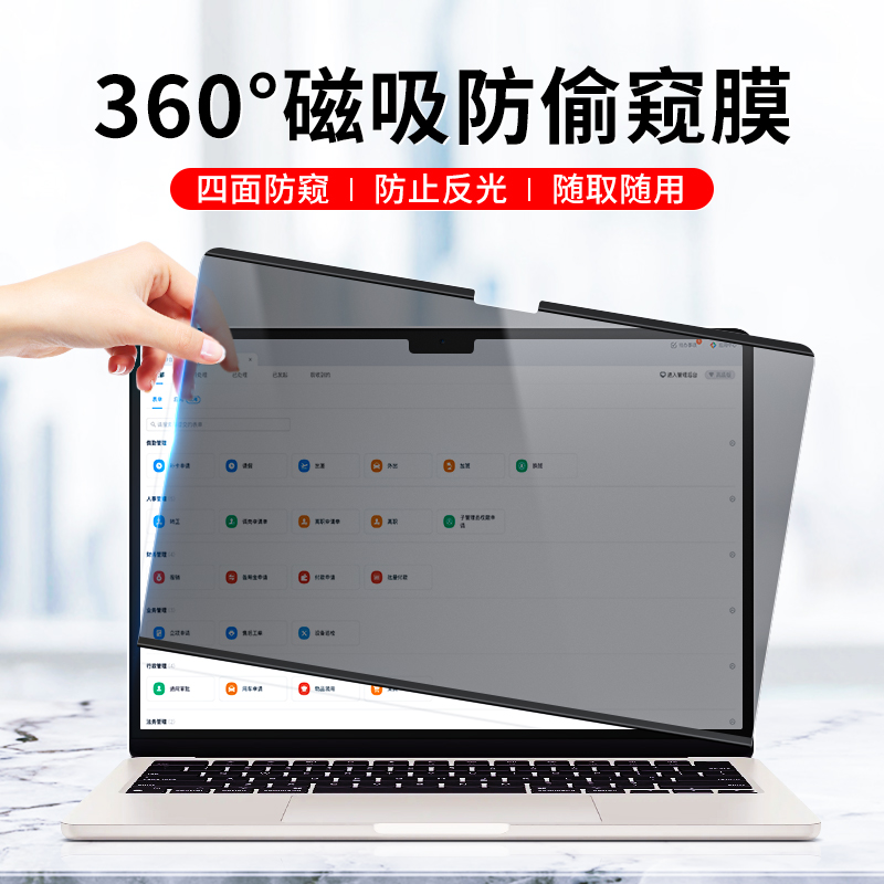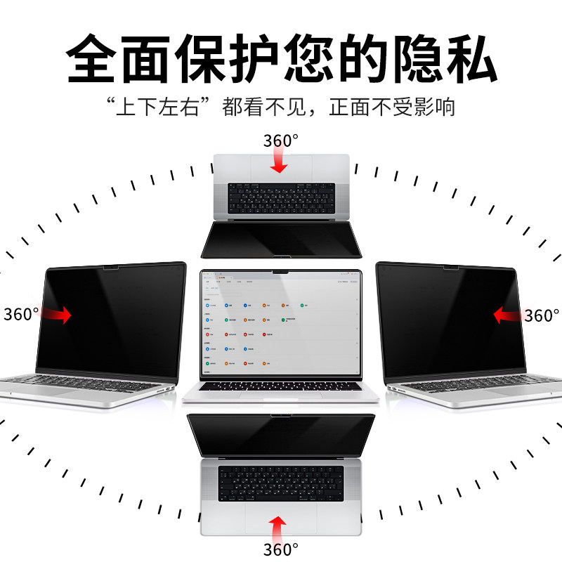 适用macbook防窥膜360度防窥air15防偷窥M2磁吸屏幕膜pro苹果笔记本电脑13.6四面m3防蓝光m1磁吸16高清保护膜