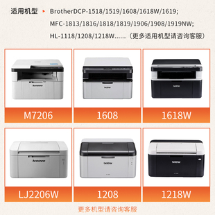 1118墨盒1218w一体机1619 1519打印机硒鼓mfc1919nw 1908墨粉盒碳粉hl1208 dcp1608 适用兄弟1618w粉盒tn1035