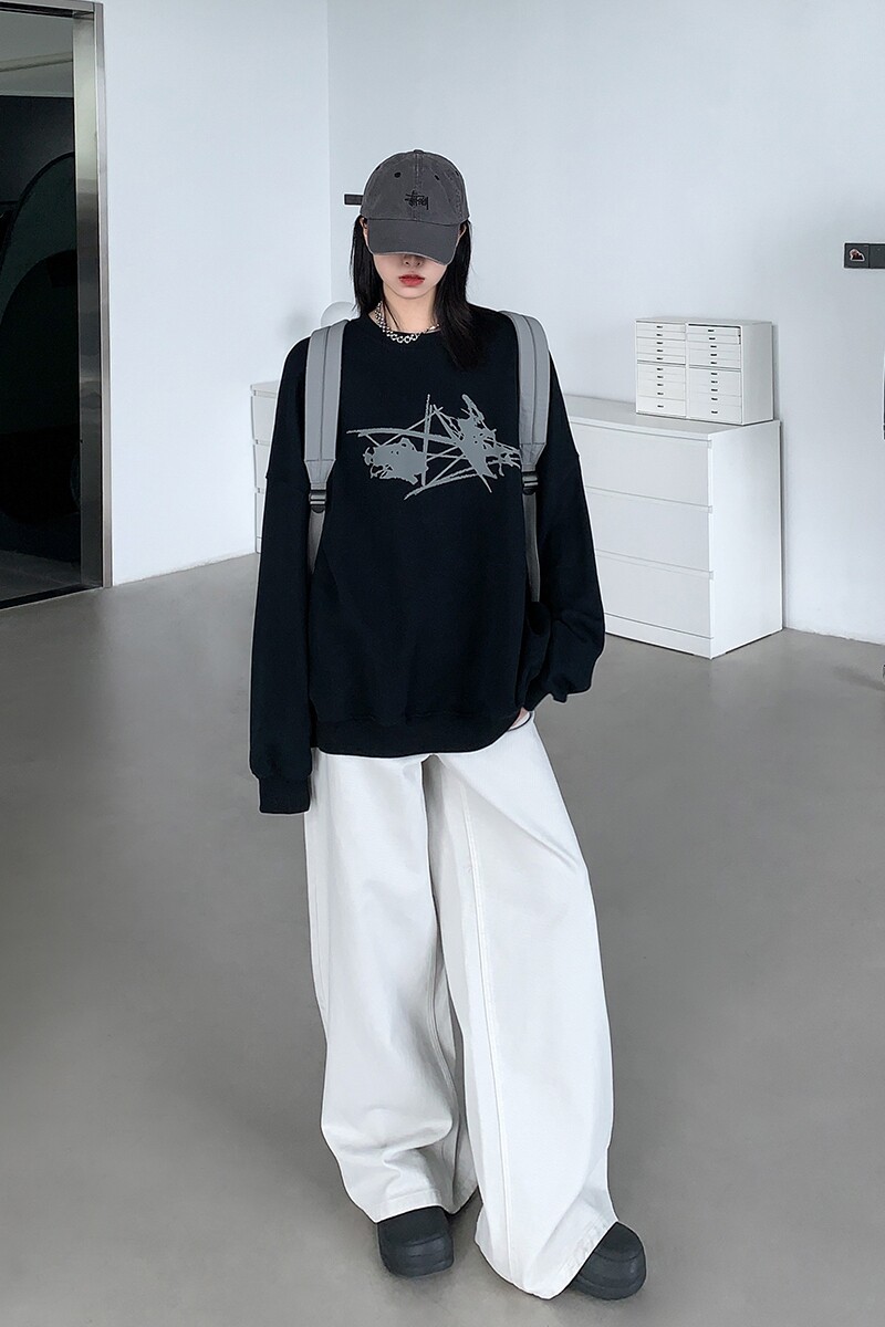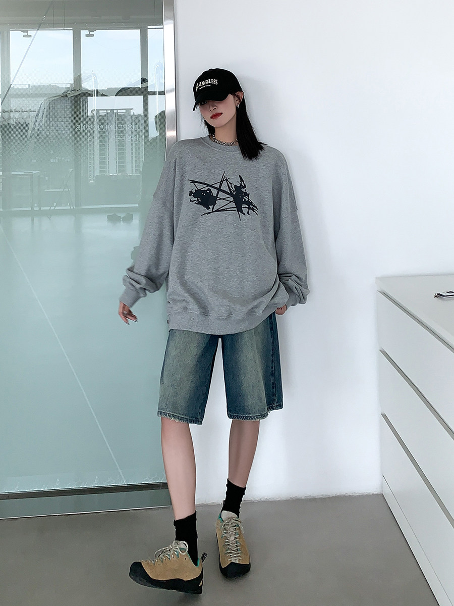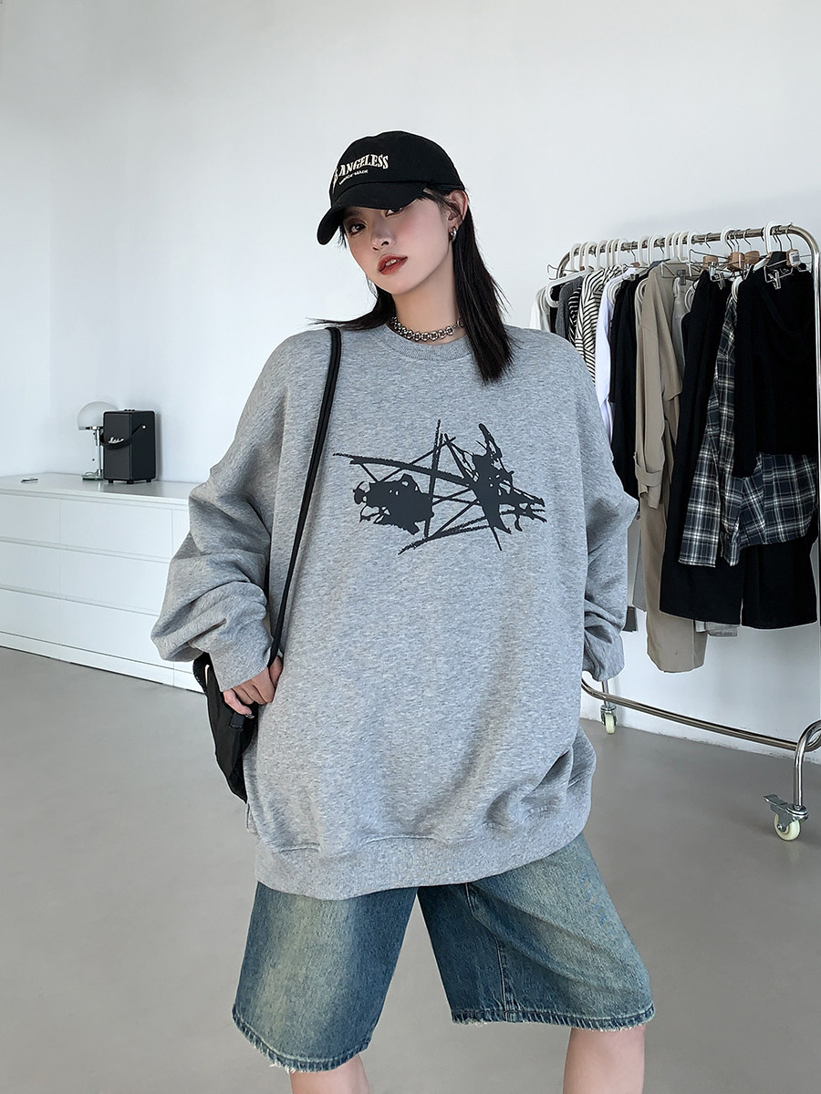 外套 型手稿印花卫衣女宽松圆领长袖 SIXI四喜家春季 Oversize大版
