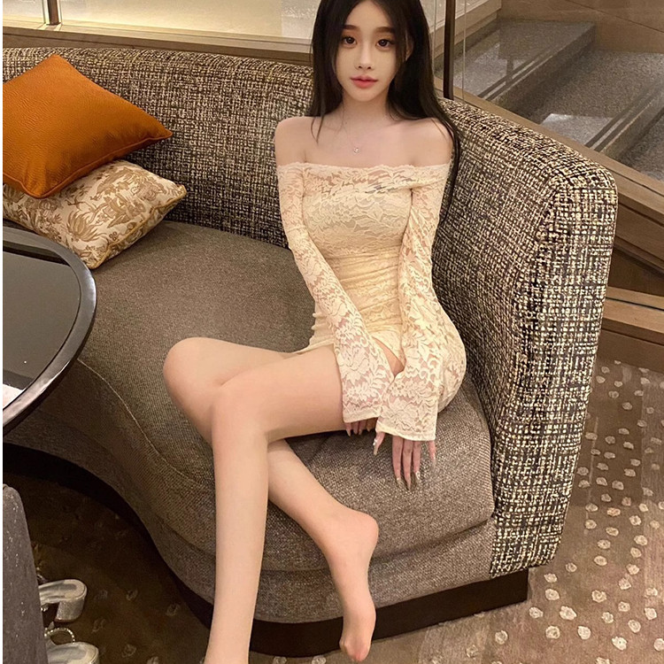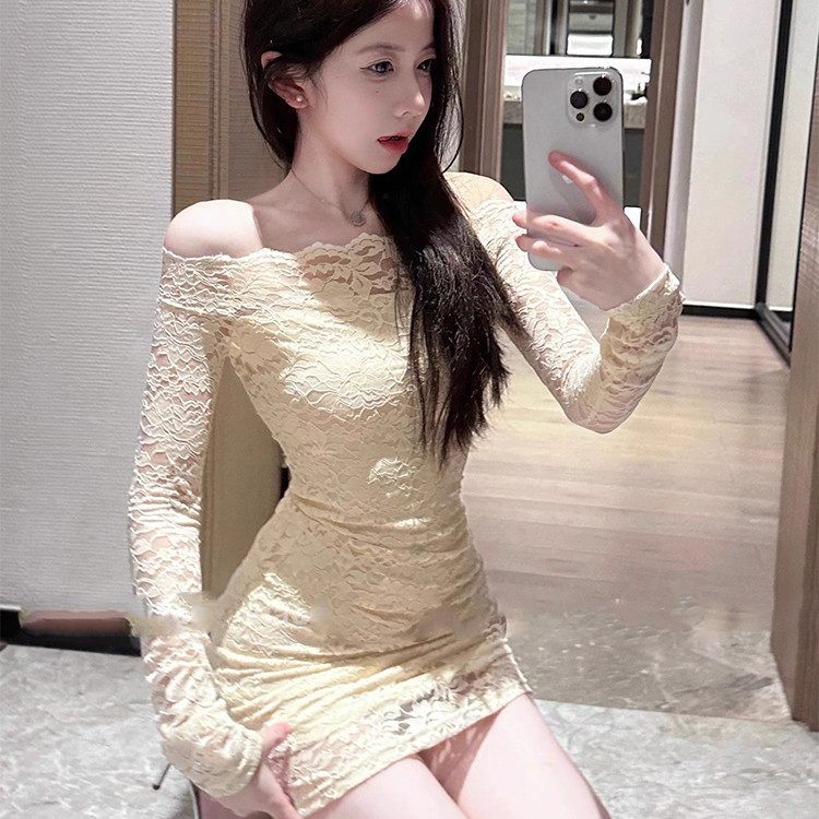 假两件斜肩长袖 Kroche 蕾丝拼接 雏菊轻语 A摆插片连衣裙 25aw