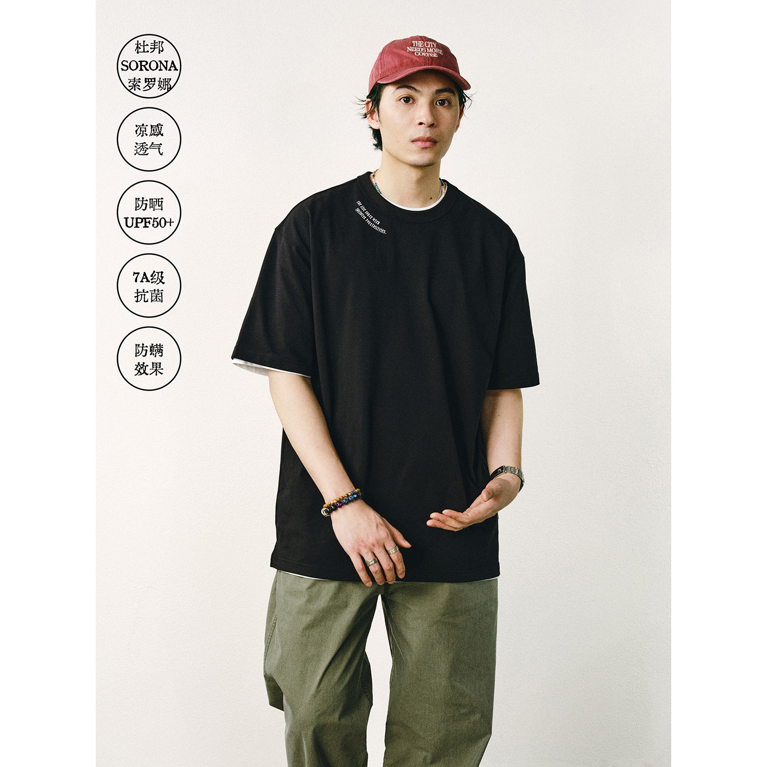 防晒抗菌面料 T恤男宽松黑白灰打底衫 CENLES 索罗娜基础短袖