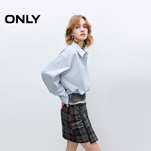 翻领外套女 隐形门襟下摆可调节抽绳纯棉宽松短款 ONLY2026春季 新款