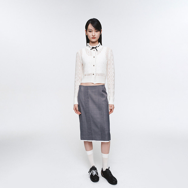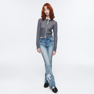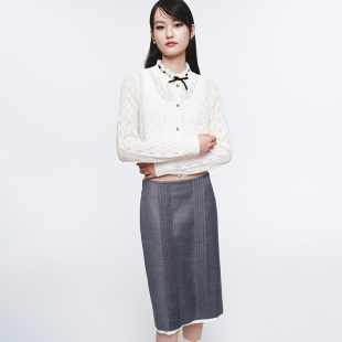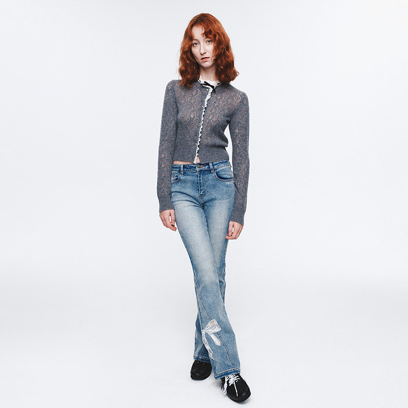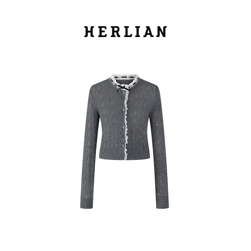 HERLIAN春季 女士蕾丝边拼接针织开衫