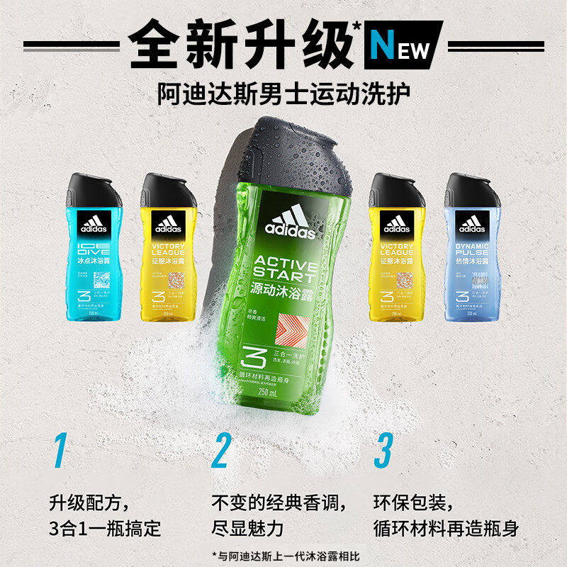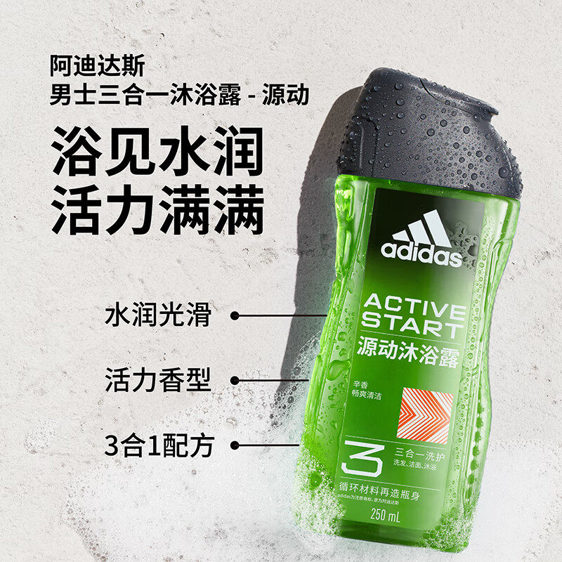 阿迪达斯Adidas男士 清爽250ml 三合一沐浴露洗发水洗面奶源动保湿