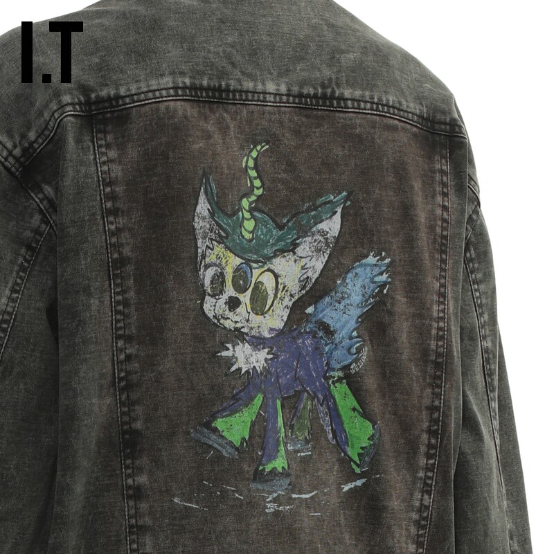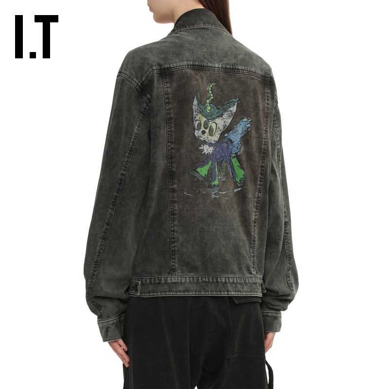 潮流个性 宽松牛仔夹克新款 卡通涂鸦印花水洗外套 We11Done女装