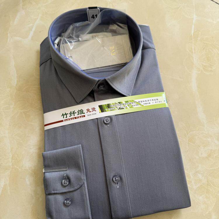 商务春夏秋款 专柜同款 特价 衬衫 免烫抗皱白深灰蓝色长袖 依文男士