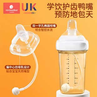 尼尼维可适配赫根奶瓶奶嘴手柄鸭嘴学饮重力球盖子heheo直饮吸管
