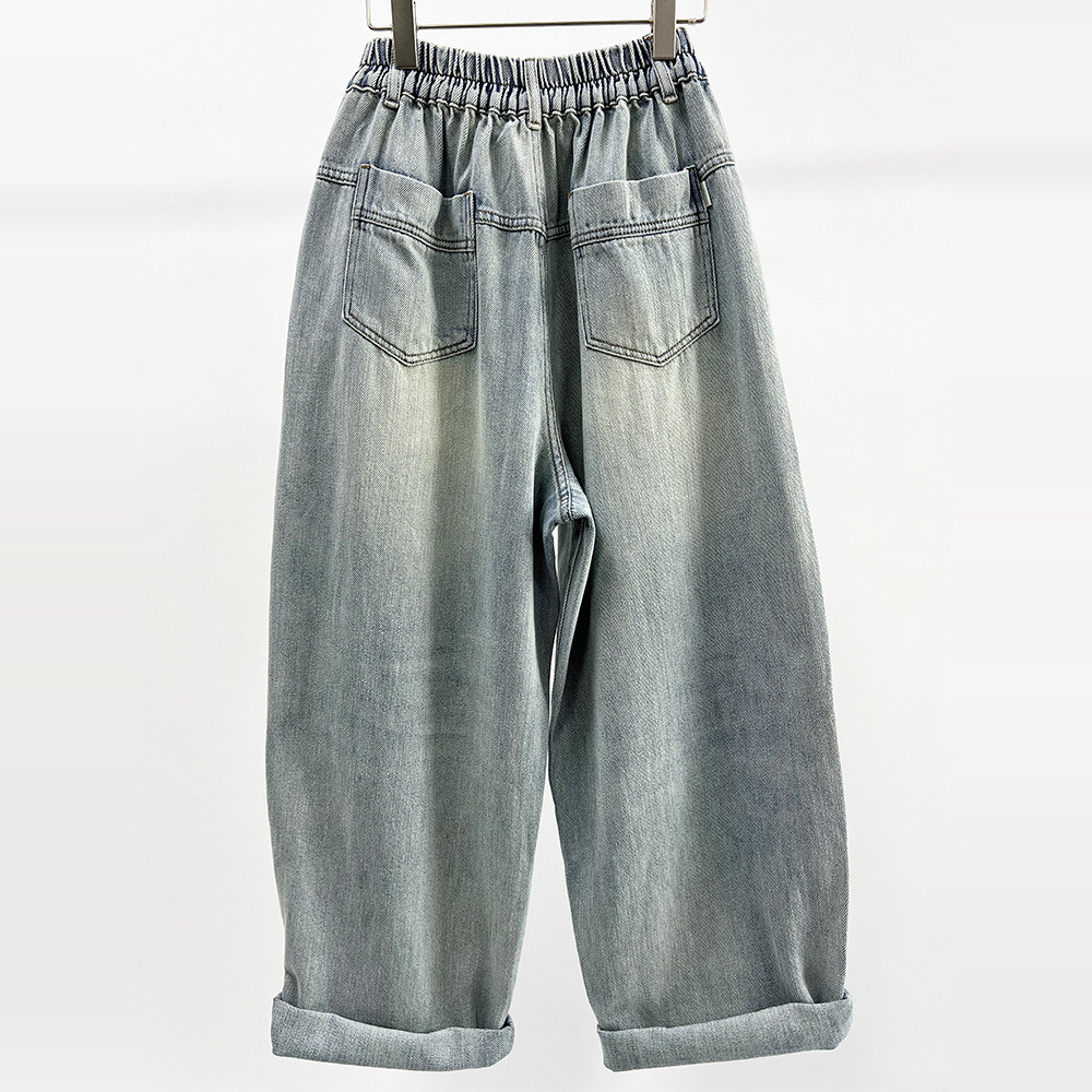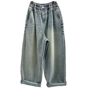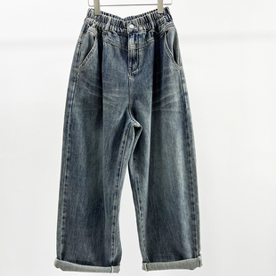 显瘦垮裤 2025春季 松紧腰牛仔女老爹裤 CHYY复古做旧色宽松大版 新款