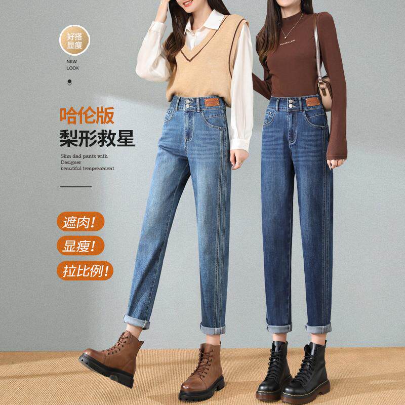 子 小个子显瘦直筒哈伦萝卜老爹裤 牛仔裤 女高腰宽松2025年春秋新款