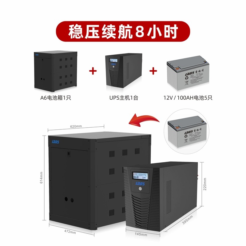 雷迪司UPS不间断电源H1000L 600W停电延时8小时稳压备用电源 1KVA