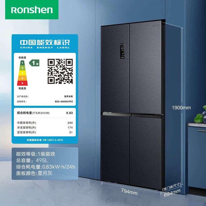 容声BCD 495WD1FPZ家用双循环十字对开门冰箱一级变频无霜等级机