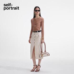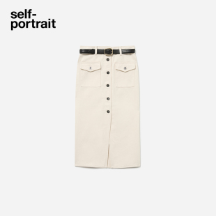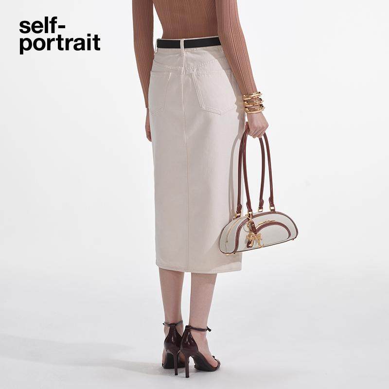 self 2025春夏象牙白百搭牛仔高腰前开衩半身裙 portrait