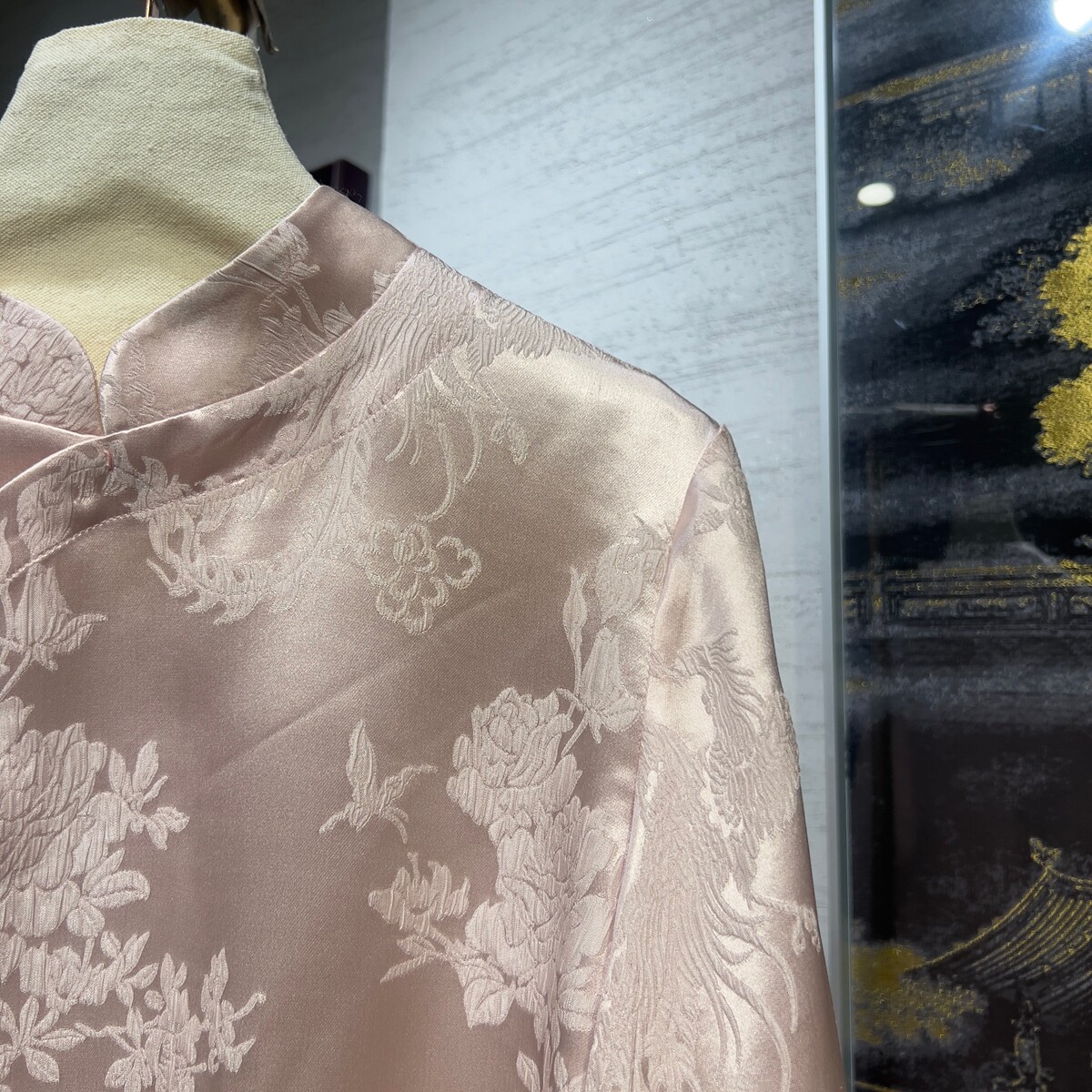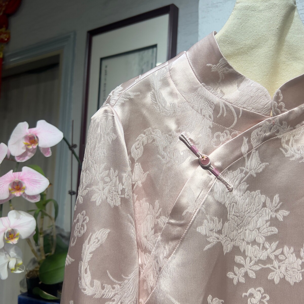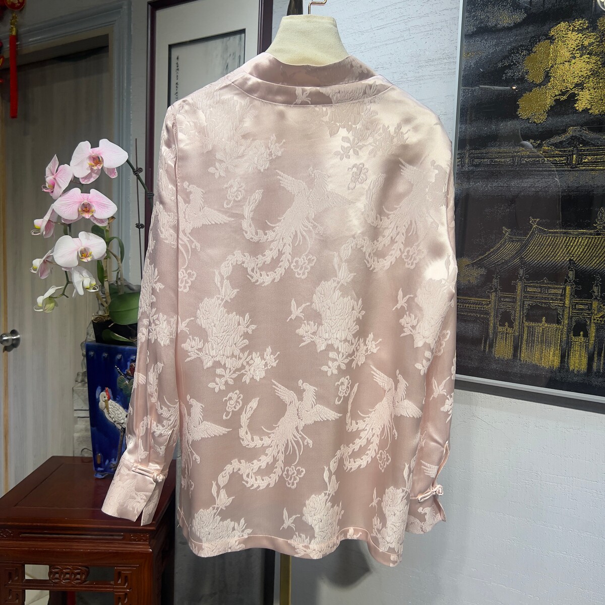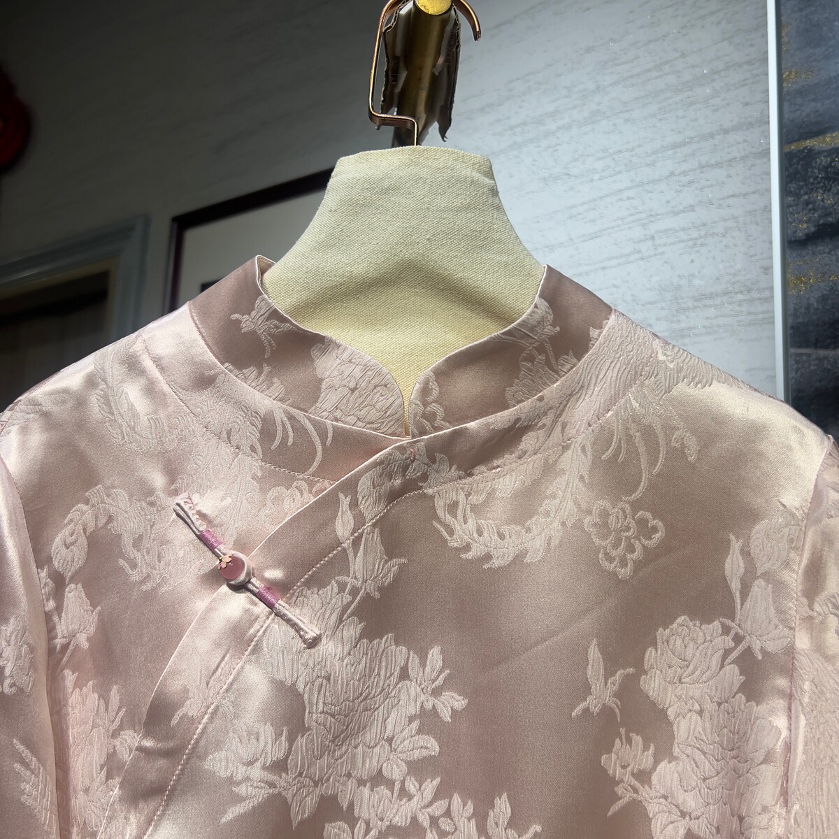 上衣7506 桑蚕丝长袖 蓝大原创女装 减龄粉色立领斜襟盘扣大码