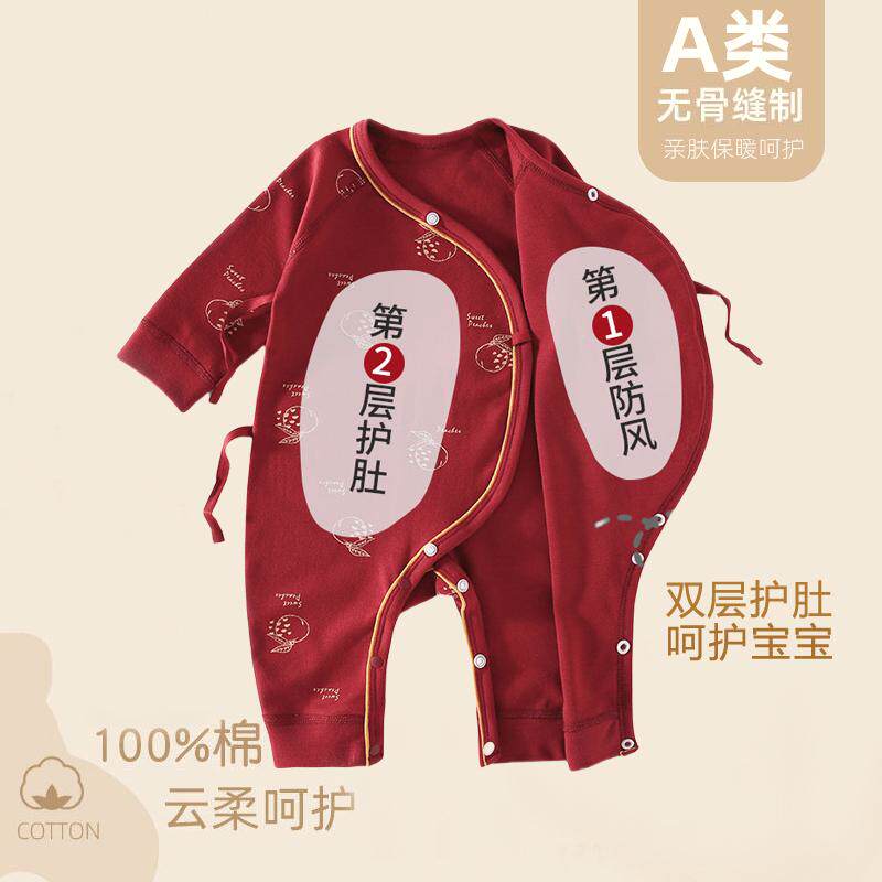 满月宝宝衣服红色新生幼儿连体衣女男婴儿百天喜庆a类纯棉春秋
