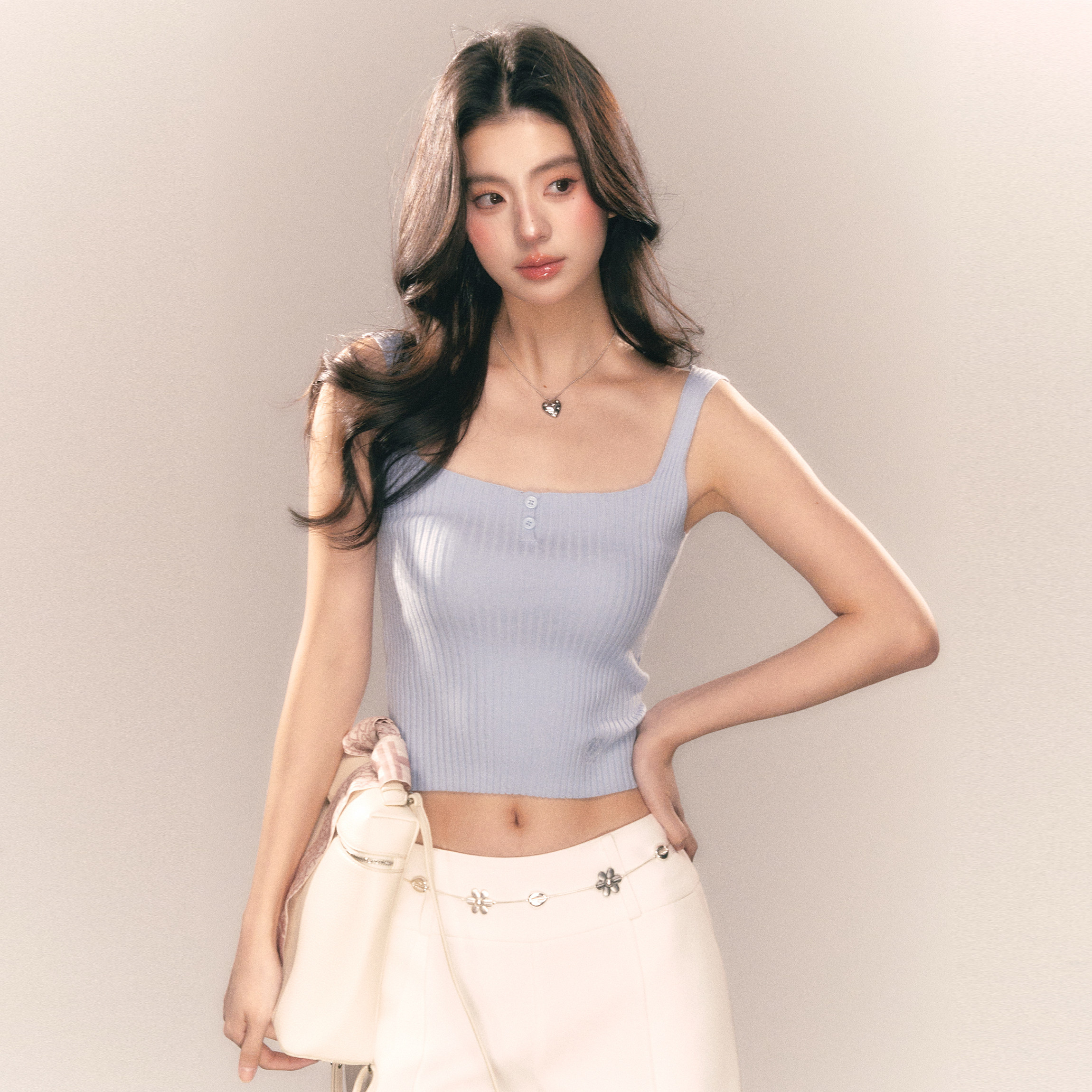 修身 新款 短上衣 纯色百搭方领收腰针织吊带背心女夏季 MMMOUND