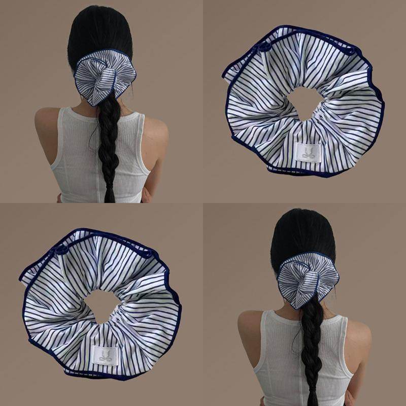 韩版 高级撞色设计发绳简约百搭发饰 复古布艺印花双层大肠发圈时尚